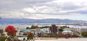元町公园可以眺望函馆湾,另一侧则是函馆山,与旧函馆区公会堂相映成趣,展现出如画般的风景。