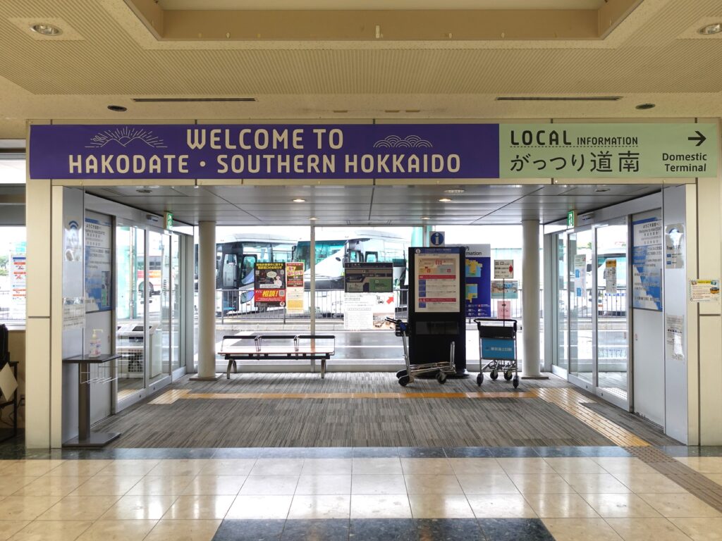 It is located on the right side as you exit the domestic arrivals lobby. Certain destinations, such as Motomachi Area at the foot of Mount Hakodate, have few convenience stores, so make sure to pick up anything you need before leaving the airport.