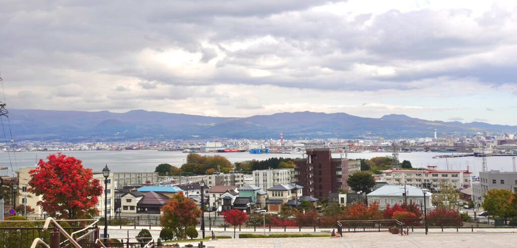 From Motomachi Park, you can enjoy a panoramic view of Hakodate Bay, while on the opposite side stands Mount Hakodate. Together with the Former Hakodate Ward Public Hall, they create a picturesque, painting-like scenery.