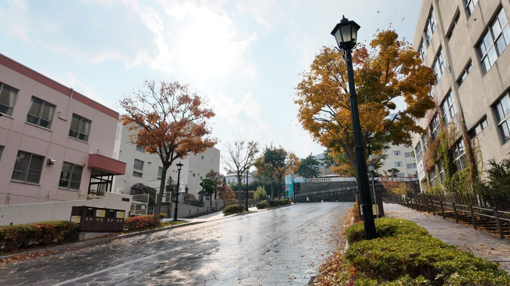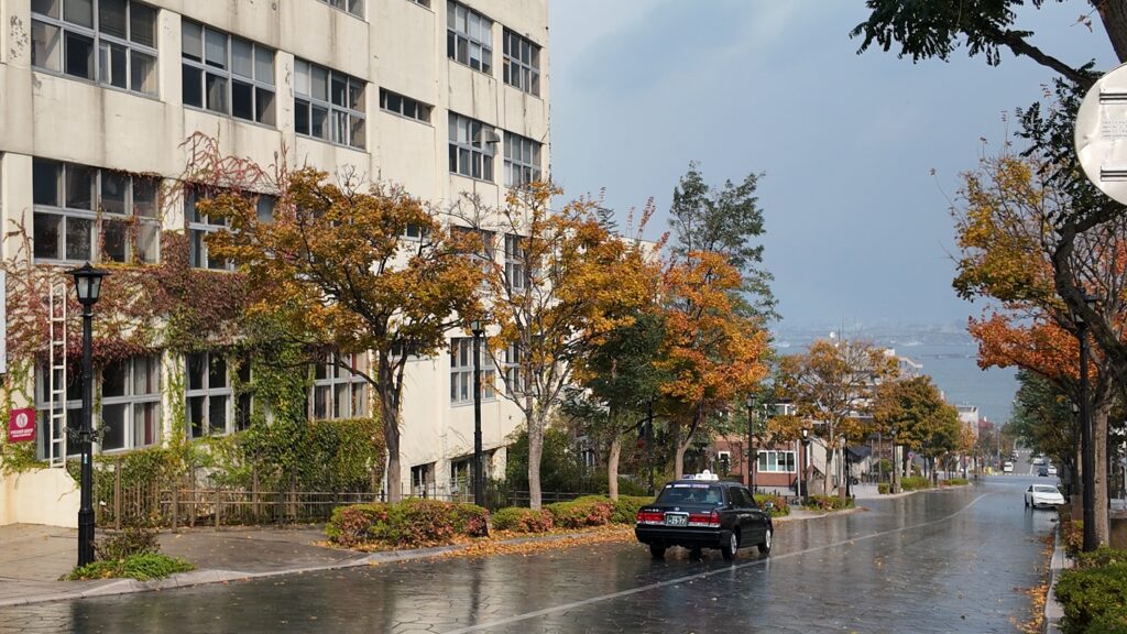 Hachimanzaka is a beautiful slope located in Hakodate’s Motomachi area. In autumn, it is surrounded by colourful trees. At the end of the straight road leading toward the sea, you can enjoy a stunning view of Hakodate Bay.