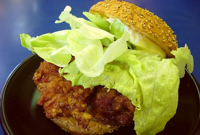 Lucky Pierrot is a local fast food restaurant chain. The most popular item is the Chinese chicken burger sandwiching fried chicken and lettuce. In addition, they have some really tall hamburgers that are best eaten by two people.